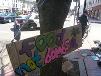 The name “Food Not Bombs” reflects the organization’s emphasis on redirecting resources from military spending and other destructive activities towards meeting basic human needs, particularly the need for food (i.e. there is always government money to fund the military, but not enough to make sure that all citizens to have enough to eat). Volunteers in various communities come together to collect surplus or discarded but safe to eat food from local grocery stores, bakeries, and farms. They then prepare and distribute vegetarian or vegan meals to the community, usually in public spaces.